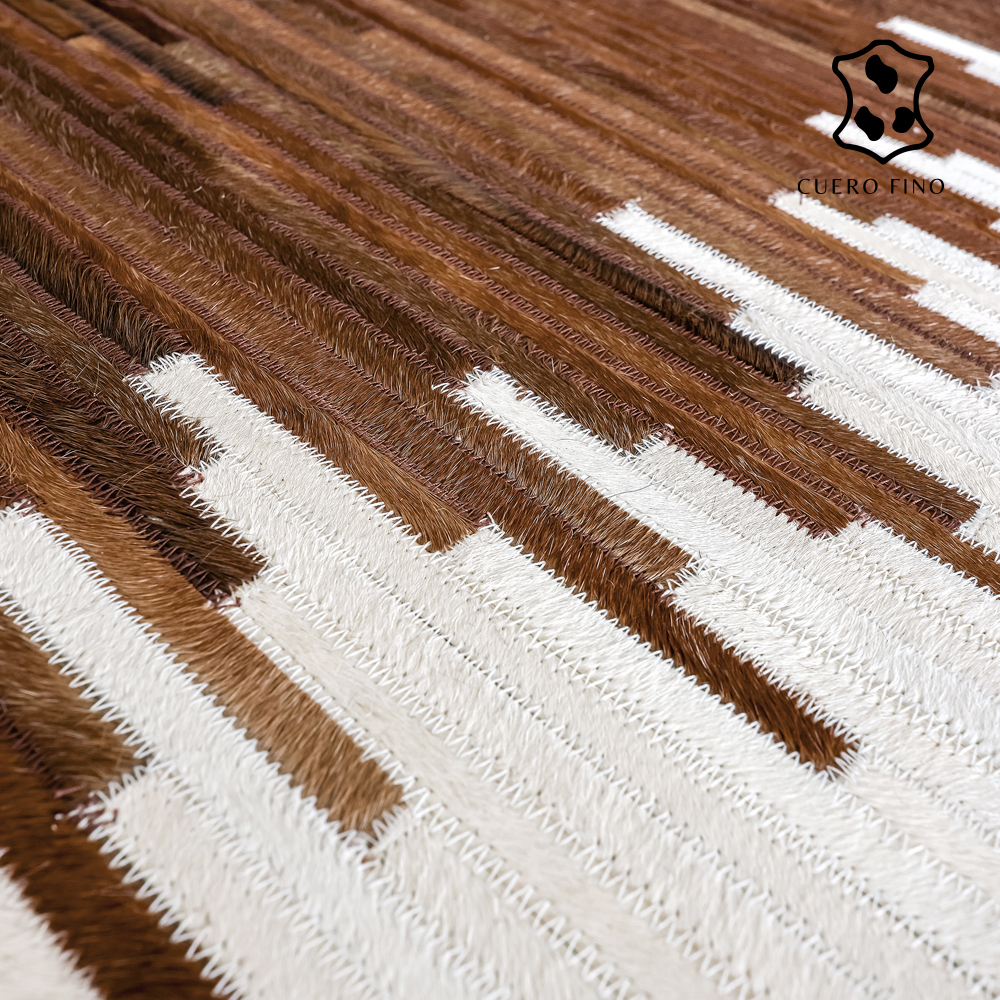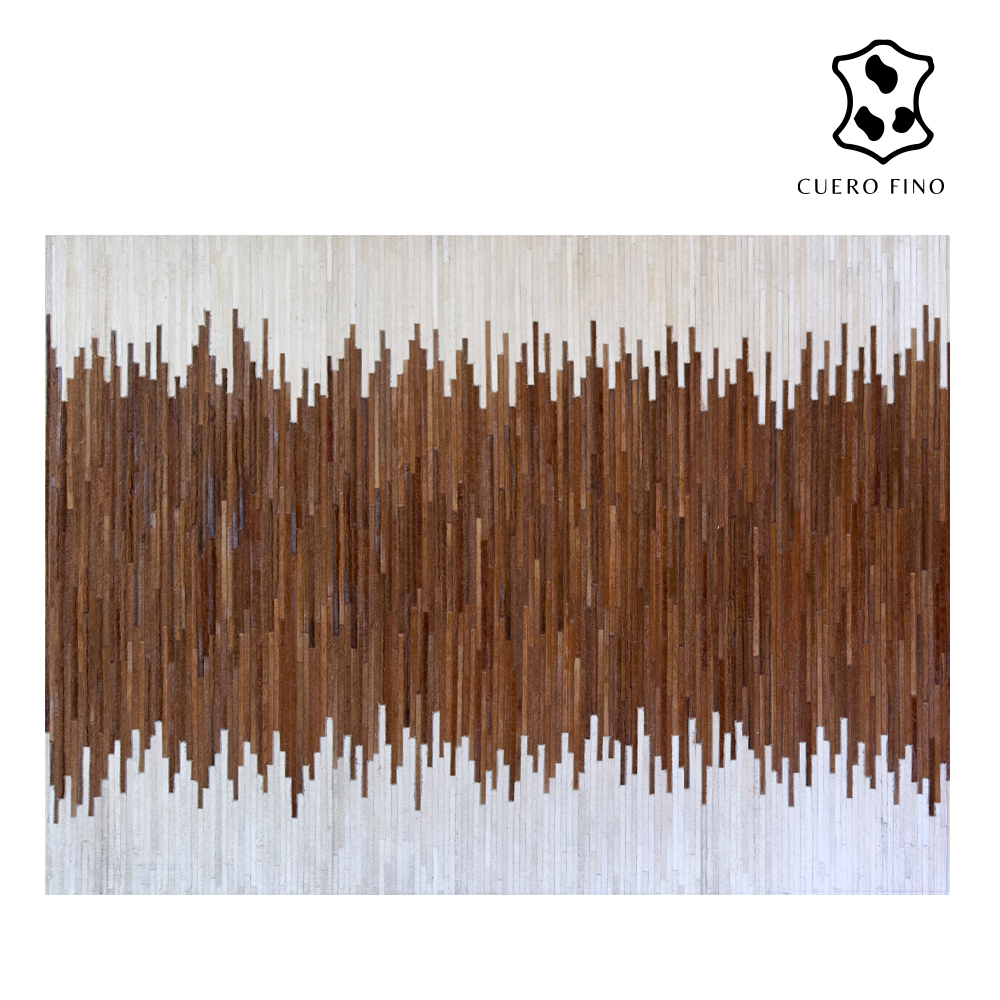Alfombras de cuero con diseños elaborados a mano 100% cuero vacuno natural cosido a maquina. Tiene un juego de colores miel y blanco. Imagina lo elegante que quedaría esta alfombra en tu espacio.