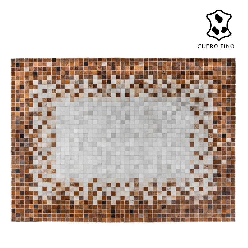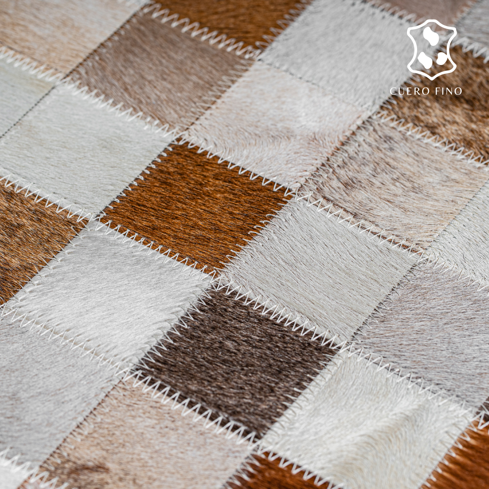 Alfombras de cuero con diseños elaborados a mano 100% cuero vacuno natural cosido a maquina. Tiene un juego de colores mieles,cafes y blanco. Imagina lo elegante que quedaría esta alfombra en tu espacio.